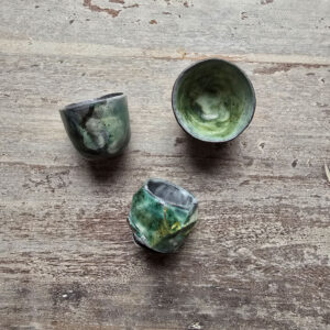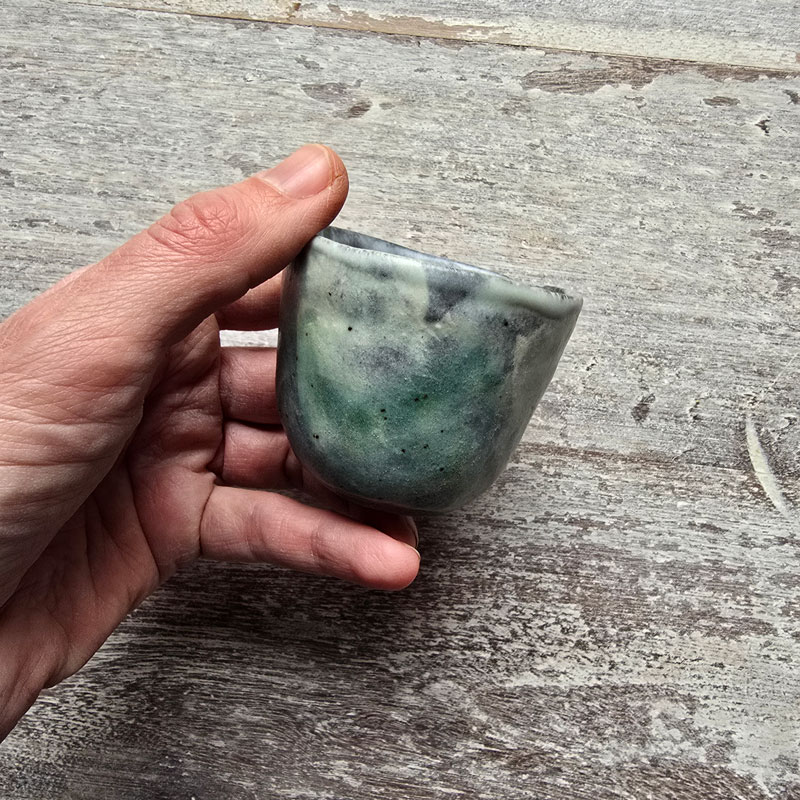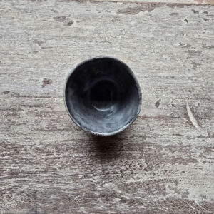 Mała kamionkowa czarka może być używana do picia gorących napojów, takich jak espresso, herbata lub służyć jako naczynie do podawania sosów lub orzechów. Każda sztuka jest ręcznie formowana metodą wygniatania i zdobiona w unikalny sposób. Nie ma dwóch takich samych kształtów i wzorów.