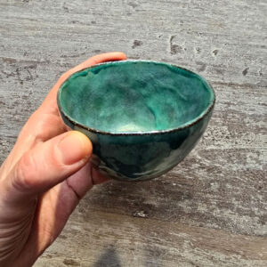 Ręcznie uformowana kamionkowa czarka do picia gorących napojów, takich jak kawa, herbata, matcha. Może służyć jako naczynie do podawania sosów, garści jagód lub orzechów.