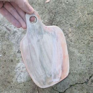 Deska należy do serii naczyń o nazwie Hoppipolla. Hoppipolla to słowo pochodzące z języka islandzkiego i oznacza skakanie po kałużach. Jest metaforyczną nazwą dla tej serii naczyń, która powstaje w wyniku swobodnej i spontanicznej zabawy kolorami i technikami szkliwienia na przekór wszelkim zasadom. Wszak w każdym z nas tkwi cząstka dziecka.