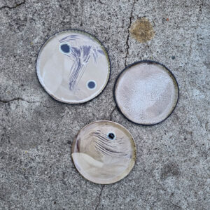 Talerz został poszkliwiony przy użyciu własnoręcznie wykonanych pędzli, z zebranych przy pracowni roślin.