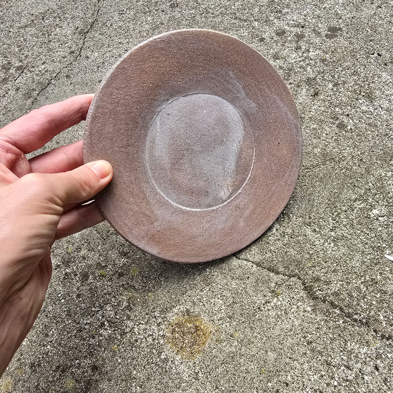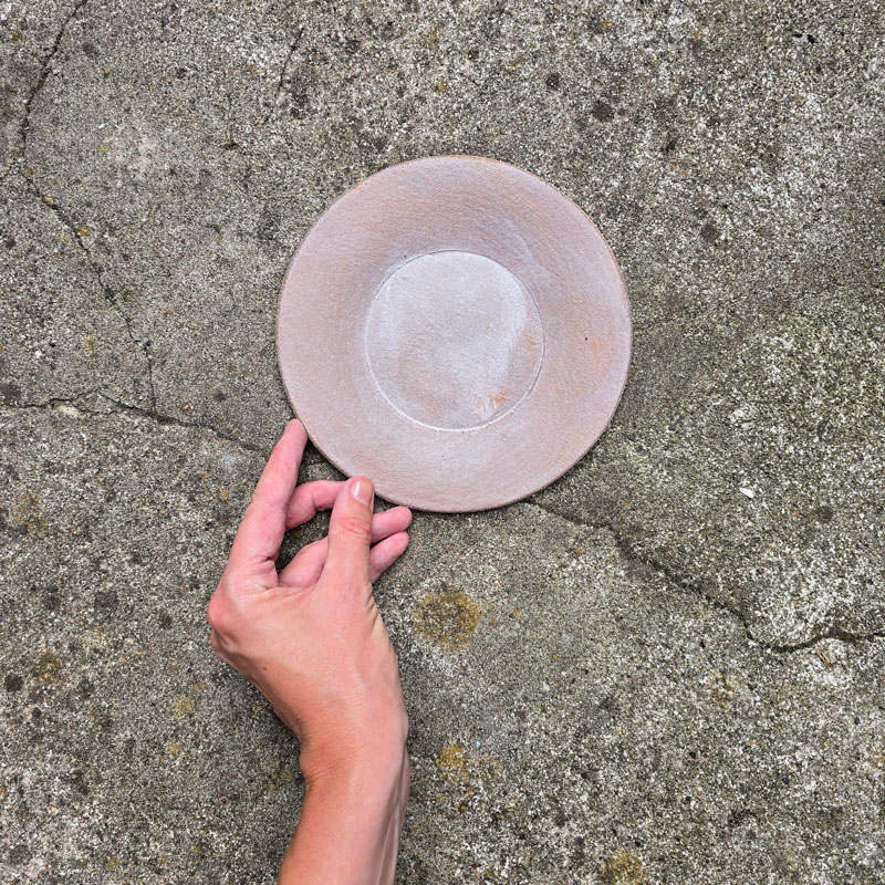 Recznie formowany mały talerz kamionkowy, który może służyć do dekoracji wnętrz lub jako naczynie do serwowania dań, owoców, warzyw.