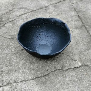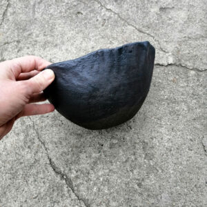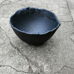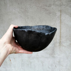 Bardzo duża misa ceramiczna, która może służyć do dekoracji wnętrz lub jako duże naczynie na owoce. Misa należy do serii naczyń o nazwie Moon. Seria powstała po powrocie z Islandii. Wulkaniczne krajobrazy oraz słynna czarna plaża Reynisfjara pchnęły mnie w kierunku stworzenia czarnej, chropowatej glazury przywołującej na myśl powierzchnię księżyca.