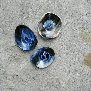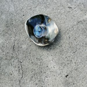 Talerz należy do serii naczyń o nazwie Hoppipolla. Hoppipolla to słowo pochodzące z języka islandzkiego i oznacza skakanie po kałużach. Jest metaforyczną nazwą dla tej serii naczyń, która powstaje w wyniku swobodnej i spontanicznej zabawy kolorami i technikami szkliwienia na przekór wszelkim zasadom. Wszak w każdym z nas tkwi cząstka dziecka.