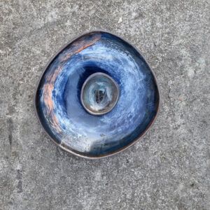 Talerz należy do serii naczyń o nazwie Hoppipolla. Hoppipolla to słowo pochodzące z języka islandzkiego i oznacza skakanie po kałużach. Jest metaforyczną nazwą dla tej serii naczyń, która powstaje w wyniku swobodnej i spontanicznej zabawy kolorami i technikami szkliwienia na przekór wszelkim zasadom. Wszak w każdym z nas tkwi cząstka dziecka.