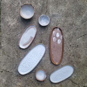 Bardzo mała miska kamionkowa wykonana z szamotowej masy, która może służyć do serwowania sosów, orzechów lub owoców sezonowych.