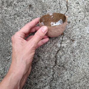 Bardzo mała miska kamionkowa wykonana z szamotowej masy, która może służyć do serwowania sosów, orzechów lub owoców sezonowych. Miska została uformowana ręcznie metodą wygniatania, dzięki czemu zyskała unikalny charakter i kształt.