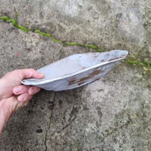 Miska należy do serii naczyń o nazwie Frozen. Jest to seria inspirowana podróżą po Islandii w okresie zimy. Skały wulkaniczne, lodowce, jeziora polodowcowe pokryte śniegiem i lodem, wprawiły mnie w nastrój melancholii. Stąd też naczynia, które powstały, pokrywa chłodna, ziemista paleta barw, a pokruszone kawałki szkła przypominają taflę lodu.