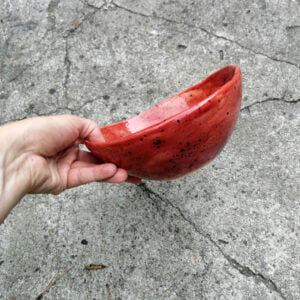 Miska ma charakterystyczną postrzępioną krawędź i należy do serii naczyń o nazwie Savage Garden. Jest ona odzwierciedleniem mojego zamiłowania do przyrody. Za inspirację posłużyły mi bujne, zielone pejzaże podczas podróży po Nowej Zelandii, a także widok z okna mojej pracowni na dziką roślinność, która tam rośnie.