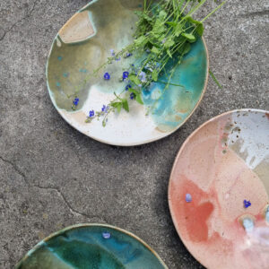Miska należy do serii naczyń o nazwie Savage Garden. Jest ona odzwierciedleniem mojego zamiłowania do przyrody. Za inspirację posłużyły mi bujne, zielone pejzaże podczas podróży po Nowej Zelandii, a także widok z okna mojej pracowni na dziką roślinność, która tam rośnie.