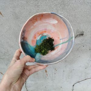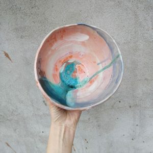 Miska należy do serii naczyń o nazwie Hoppipolla. Hoppipolla to słowo pochodzące z języka islandzkiego i oznacza skakanie po kałużach. Jest metaforyczną nazwą dla tej serii naczyń, która powstaje w wyniku swobodnej i spontanicznej zabawy kolorami i technikami szkliwienia na przekór wszelkim zasadom. Wszak w każdym z nas tkwi cząstka dziecka.