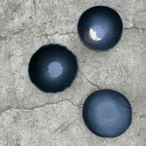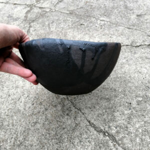 Miska należy do serii naczyń o nazwie Moon. Seria powstała po powrocie z Islandii. Wulkaniczne krajobrazy oraz słynna czarna plaża Reynisfjara pchnęły mnie w kierunku stworzenia czarnej, chropowatej glazury przywołującej na myśl powierzchnię księżyca.