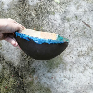 Miska ma charakterystyczną postrzępioną krawędź i należy do serii naczyń o nazwie Savage Garden. Jest ona odzwierciedleniem mojego zamiłowania do przyrody. Za inspirację posłużyły mi bujne, zielone pejzaże podczas podróży po Nowej Zelandii, a także widok z okna mojej pracowni na dziką roślinność, która tam rośnie.
