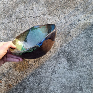 Miska ma charakterystyczną postrzępioną krawędź i należy do serii naczyń o nazwie Savage Garden. Jest ona odzwierciedleniem mojego zamiłowania do przyrody. Za inspirację posłużyły mi bujne, zielone pejzaże podczas podróży po Nowej Zelandii, a także widok z okna mojej pracowni na dziką roślinność, która tam rośnie.