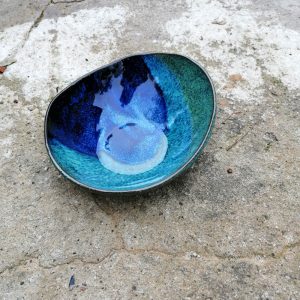 Mała miseczka ceramiczna, która może służyć do serwowania przekąsek, orzechów lub owoców sezonowych.