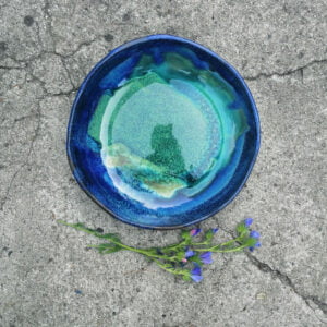 Miska ma charakterystyczną postrzępioną krawędź i należy do serii naczyń o nazwie Savage Garden. Jest ona odzwierciedleniem mojego zamiłowania do przyrody. Za inspirację posłużyły mi bujne, zielone pejzaże podczas podróży po Nowej Zelandii, a także widok z okna mojej pracowni na dziką roślinność, która tam rośnie.