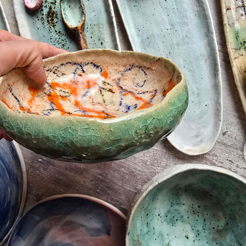 Miska należy do serii naczyń o nazwie Hoppipolla. Hoppipolla to słowo pochodzące z języka islandzkiego i oznacza skakanie po kałużach. Jest metaforyczną nazwą dla tej serii naczyń, która powstaje w wyniku swobodnej i spontanicznej zabawy kolorami i technikami szkliwienia na przekór wszelkim zasadom. Wszak w każdym z nas tkwi cząstka dziecka.