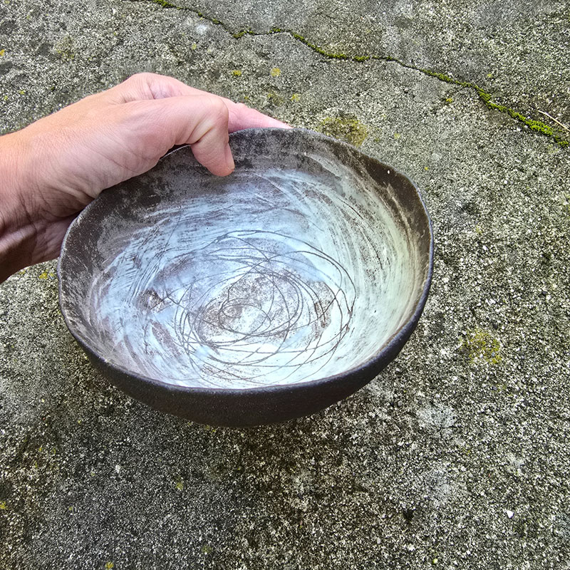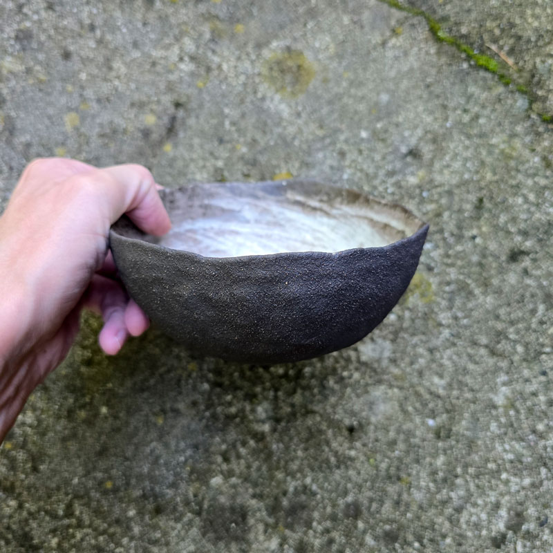 Ręcznie formowana miska kamionkowa, która może służyć do podawania zup, owsianki lub jako dekoracja stołu. Dobrze sprawdzi się jako miseczka imprezowa do serwowania przekąsek lub warzywnych smarowideł. Miska wykonana techniką ręcznego wygniatania z kuli masy ceramicznej, co sprawia, że jej kształt jest jedyny w swoim rodzaju. Miska należy do serii naczyń o nazwie Rusty. Japońska filozofia wabi sabi zainicjowała serię surowych, nieregularnych naczyń. Kiedy zwiedzałam Kioto, miałam okazję zrozumieć w jaki sposób i dlaczego Japończycy widzą piękno w niedoskonałości i przemijaniu.