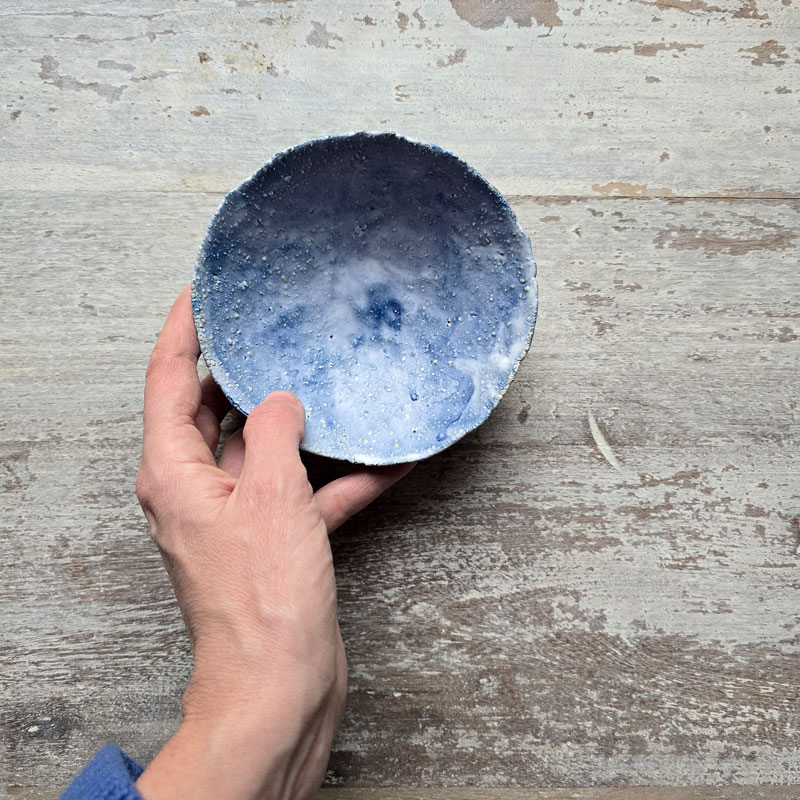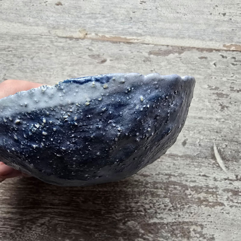 Ręcznie formowana miska kamionkowa, która może służyć do podawania zup, owsianki lub jako dekoracja stołu. Dobrze sprawdzi się jako miseczka imprezowa do serwowania przekąsek lub warzywnych smarowideł. Miska wykonana techniką ręcznego wygniatania z kuli masy ceramicznej, co sprawia, że jej kształt jest jedyny w swoim rodzaju. Miska należy do serii naczyń o nazwie Sky.