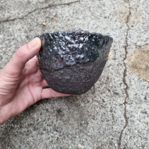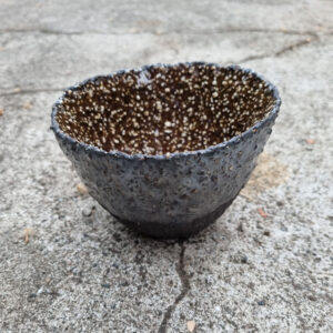 Średnia miska kamionkowa wykonana z grubej, szamotowej masy, która może służyć do serwowania przekąsek, orzechów lub owoców sezonowych. Miska została uformowana ręcznie z kuli gliny, dzięki czemu zyskała unikalny charakter i kształt.