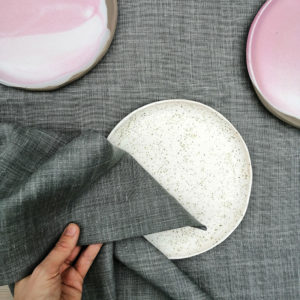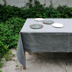 Lniany obrus w kolorze szarego melanżu, idealny na długi stół. Obrus pięknie prezentuje się w towarzystwie ręcznie robionych naczyń ceramicznych lub drewnianych.