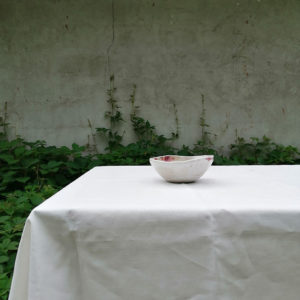 Lniany obrus w kolorze białym, idealny na długi stół. Obrus pięknie prezentuje się w towarzystwie ręcznie robionych naczyń ceramicznych lub drewnianych.