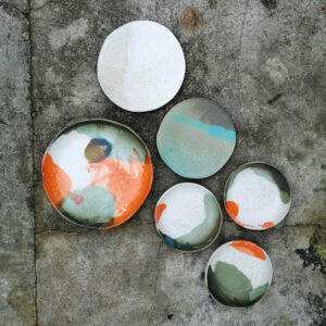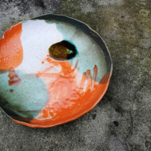 Patera należy do serii naczyń o nazwie Aotearoa. Aotearoa to nazwa Nowej Zelandii w języku maoryskim. Seria powstała pod wpływem podróży po tym malowniczym kraju, która miała miejsce w październiku 2019 roku. Nowa Zelandia jest uznawana za najbardziej zróżnicowany pod względem geologicznym i geograficznym kraj na świecie. Nic dziwnego, można tam spotkać aktywne wulkany, głębokie fiordy, pokryte śniegiem góry, lasy sekwojowe, lodowce, gorące żródła, gejzery, baseny błotne, świecące jaskinie i spektakularne plaże ( złote, czarne i białe).