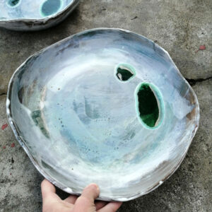 Patera należy do serii naczyń o nazwie Hoppipolla. Hoppipolla to słowo pochodzące z języka islandzkiego i oznacza skakanie po kałużach. Jest metaforyczną nazwą dla tej serii naczyń, która powstaje w wyniku swobodnej i spontanicznej zabawy kolorami i technikami szkliwienia na przekór wszelkim zasadom. Wszak w każdym z nas tkwi cząstka dziecka.