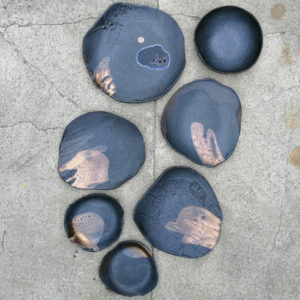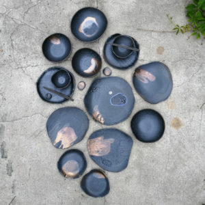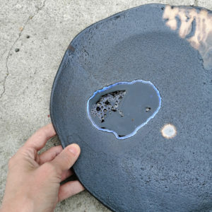 Patera ceramiczna, która może służyć do dekoracji wnętrz lub jako duże naczynie na owoce. Talerz należy do serii naczyń o nazwie Moon. Seria powstała po powrocie z Islandii. Wulkaniczne krajobrazy oraz słynna czarna plaża Reynisfjara pchnęły mnie w kierunku stworzenia czarnej, chropowatej glazury przywołującej na myśl powierzchnię księżyca.