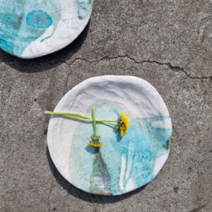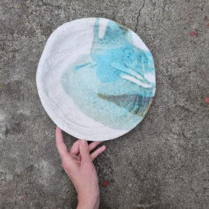 Talerz należy do serii naczyń o nazwie Glacier. Jest to seria inspirowana podróżą po południowej wyspie Nowej Zelandii. Skały, lodowce, jeziora polodowcowe pokryte śniegiem i lodem to charakterystyczne obrazy tej części kraju. Stąd też naczynia, które powstały pokrywa ciemna, ziemista paleta barw z mocnym akcentem turkusowym odnoszącym się do żywego koloru wody jeziora polodowcowego. Na zdjęciu widoczny lodowiec Tasman – największy lodowiec w Nowej Zelandii.