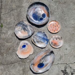 Talerz należy do serii naczyń o nazwie Hoppipolla. Hoppipolla to słowo pochodzące z języka islandzkiego i oznacza skakanie po kałużach. Jest metaforyczną nazwą dla tej serii naczyń, która powstaje w wyniku swobodnej i spontanicznej zabawy kolorami i technikami szkliwienia na przekór wszelkim zasadom. Wszak w każdym z nas tkwi cząstka dziecka.