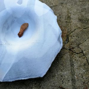 Naczynie należy do serii naczyń o nazwie Frozen. Jest to seria inspirowana podróżą po Islandii w okresie zimy. Skały wulkaniczne, lodowce, jeziora polodowcowe pokryte śniegiem i lodem, wprawiły mnie w nastrój melancholii. Stąd też naczynia, które powstały, pokrywa chłodna, ziemista paleta barw, a pokruszone kawałki szkła przypominają taflę lodu.