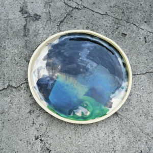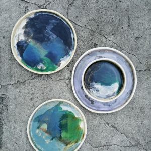 Talerz należy do serii naczyń o nazwie Hoppipolla. Hoppipolla to słowo pochodzące z języka islandzkiego i oznacza skakanie po kałużach. Jest metaforyczną nazwą dla tej serii naczyń, która powstaje w wyniku swobodnej i spontanicznej zabawy kolorami i technikami szkliwienia na przekór wszelkim zasadom. Wszak w każdym z nas tkwi cząstka dziecka.