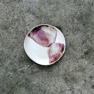 Bardzo mały talerz ceramiczny, który może służyć do serwowania przystawek lub deserów. Talerz należy do serii naczyń o nazwie Early Winter. Seria obrazuje ten szczególny moment w roku, gdy kończy się jesień, a zaczyna zima. Czerwień i purpura mieszają się z zimowymi odcieniami bieli.