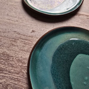 Bardzo mały talerz ceramiczny, który może służyć do serwowania przystawek, śniadań lub deserów. Talerz należy do serii naczyń o nazwie Savage Garden. Jest ona odzwierciedleniem mojego zamiłowania do przyrody. Za inspirację posłużyły mi bujne, zielone pejzaże podczas podróży po Nowej Zelandii, a także widok z okna mojej pracowni na dziką roślinność, która tam rośnie.