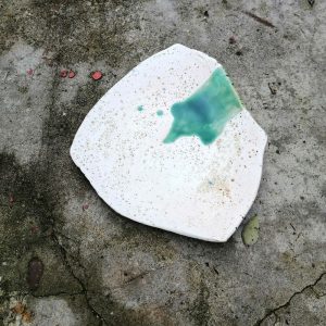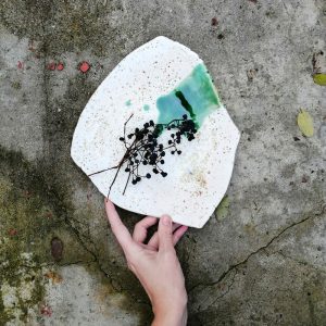 Talerz należy do serii naczyń o nazwie Hoppipolla. Hoppipolla to słowo pochodzące z języka islandzkiego i oznacza skakanie po kałużach. Jest metaforyczną nazwą dla tej serii naczyń, która powstaje w wyniku swobodnej i spontanicznej zabawy kolorami i technikami szkliwienia na przekór wszelkim zasadom. Wszak w każdym z nas tkwi cząstka dziecka.