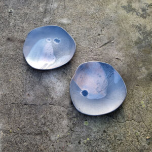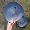 Duży talerz ceramiczny, który może służyć jako dekoracja stołu lub talerz obiadowy do serwowania przystawek, dań głównych, rolek sushi, czipsów z warzyw itd. Talerz należy do serii naczyń o nazwie Moon. Seria powstała po powrocie z Islandii. Wulkaniczne krajobrazy oraz słynna czarna plaża Reynisfjara pchnęły mnie w kierunku stworzenia czarnej, chropowatej glazury przywołującej na myśl powierzchnię księżyca.