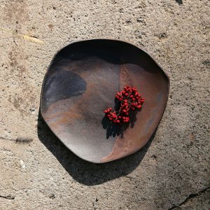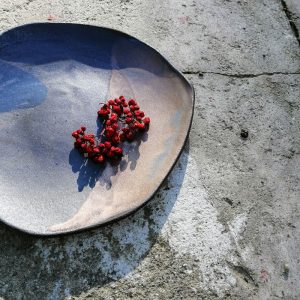 Duży talerz ceramiczny, który może służyć jako dekoracja stołu lub talerz obiadowy do serwowania przystawek, dań głównych, rolek sushi, czipsów z warzyw itd. Talerz należy do serii naczyń o nazwie Rusty. Japońska filozofia wabi sabi zainicjowała serię surowych, nieregularnych naczyń. Kiedy zwiedzałam Kioto, miałam okazję zrozumieć w jaki sposób i dlaczego Japończycy widzą piękno w niedoskonałości i przemijaniu.