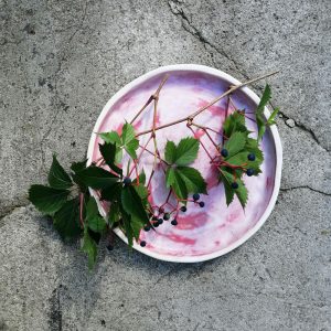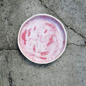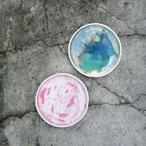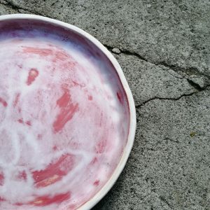 Talerz należy do serii naczyń o nazwie Hoppipolla. Hoppipolla to słowo pochodzące z języka islandzkiego i oznacza skakanie po kałużach. Jest metaforyczną nazwą dla tej serii naczyń, która powstaje w wyniku swobodnej i spontanicznej zabawy kolorami i technikami szkliwienia na przekór wszelkim zasadom. Wszak w każdym z nas tkwi cząstka dziecka.