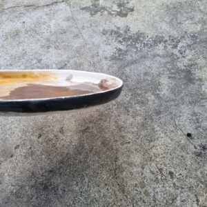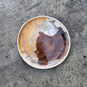 Talerz należy do serii naczyń o nazwie Hoppipolla. Hoppipolla to słowo pochodzące z języka islandzkiego i oznacza skakanie po kałużach. Jest metaforyczną nazwą dla tej serii naczyń, która powstaje w wyniku swobodnej i spontanicznej zabawy kolorami i technikami szkliwienia na przekór wszelkim zasadom. Wszak w każdym z nas tkwi cząstka dziecka.