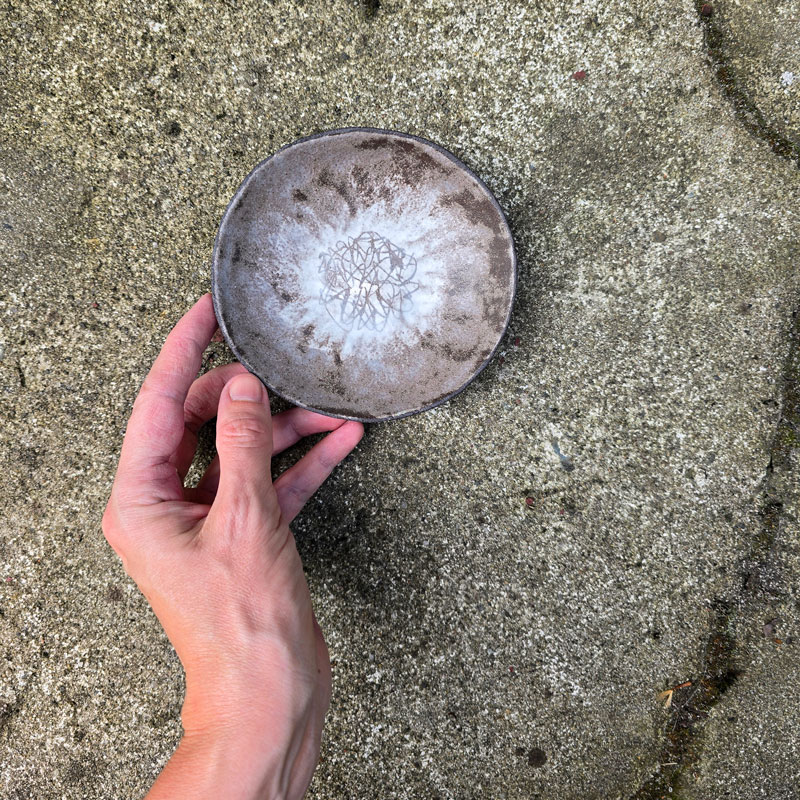 Mały ręcznie formowany głęboki talerz ceramiczny, który może służyć do serwowania przystawek, śniadań lub deserów. Talerz należy do serii naczyń o nazwie Rusty. Japońska filozofia wabi sabi zainicjowała serię surowych, nieregularnych naczyń. Kiedy zwiedzałam Kioto, miałam okazję zrozumieć w jaki sposób i dlaczego Japończycy widzą piękno w niedoskonałości i przemijaniu.