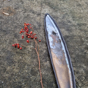 Podłużny talerz ceramiczny, który może służyć jako dekoracja stołu lub talerz do serwowania przekąsek, kiszonek, rolek sushi, czipsów z warzyw itd. Może także pełnić funkcję przybornika na ołówki i pióra przy biurku. Talerz należy do serii naczyń o nazwie Rusty. Japońska filozofia wabi sabi zainicjowała serię surowych, nieregularnych naczyń. Kiedy zwiedzałam Kioto, miałam okazję zrozumieć w jaki sposób i dlaczego Japończycy widzą piękno w niedoskonałości i przemijaniu.