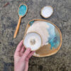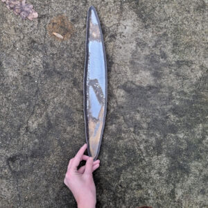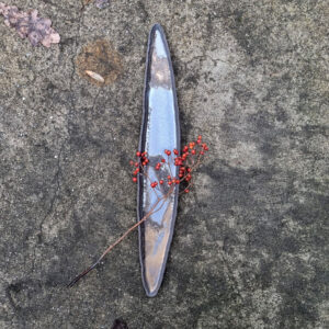 Podłużny talerz ceramiczny, który może służyć jako dekoracja stołu lub talerz do serwowania przekąsek, kiszonek, rolek sushi, czipsów z warzyw itd. Może także pełnić funkcję przybornika na ołówki i pióra przy biurku. Talerz należy do serii naczyń o nazwie Rusty. Japońska filozofia wabi sabi zainicjowała serię surowych, nieregularnych naczyń. Kiedy zwiedzałam Kioto, miałam okazję zrozumieć w jaki sposób i dlaczego Japończycy widzą piękno w niedoskonałości i przemijaniu.