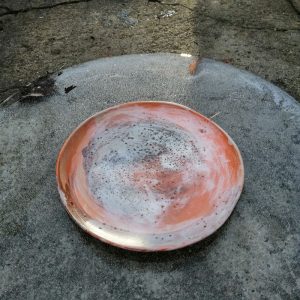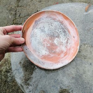 Talerz należy do serii naczyń o nazwie Hoppipolla. Hoppipolla to słowo pochodzące z języka islandzkiego i oznacza skakanie po kałużach. Jest metaforyczną nazwą dla tej serii naczyń, która powstaje w wyniku swobodnej i spontanicznej zabawy kolorami i technikami szkliwienia na przekór wszelkim zasadom. Wszak w każdym z nas tkwi cząstka dziecka.