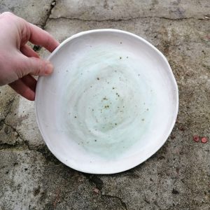 Talerz należy do serii naczyń o nazwie Hoppipolla. Hoppipolla to słowo pochodzące z języka islandzkiego i oznacza skakanie po kałużach. Jest metaforyczną nazwą dla tej serii naczyń, która powstaje w wyniku swobodnej i spontanicznej zabawy kolorami i technikami szkliwienia na przekór wszelkim zasadom. Wszak w każdym z nas tkwi cząstka dziecka.