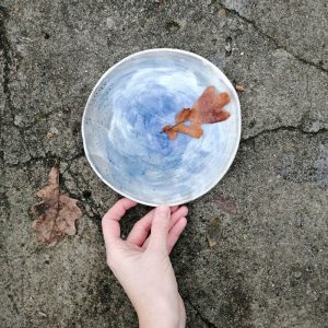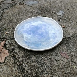 Talerz należy do serii naczyń o nazwie Hoppipolla. Hoppipolla to słowo pochodzące z języka islandzkiego i oznacza skakanie po kałużach. Jest metaforyczną nazwą dla tej serii naczyń, która powstaje w wyniku swobodnej i spontanicznej zabawy kolorami i technikami szkliwienia na przekór wszelkim zasadom. Wszak w każdym z nas tkwi cząstka dziecka.