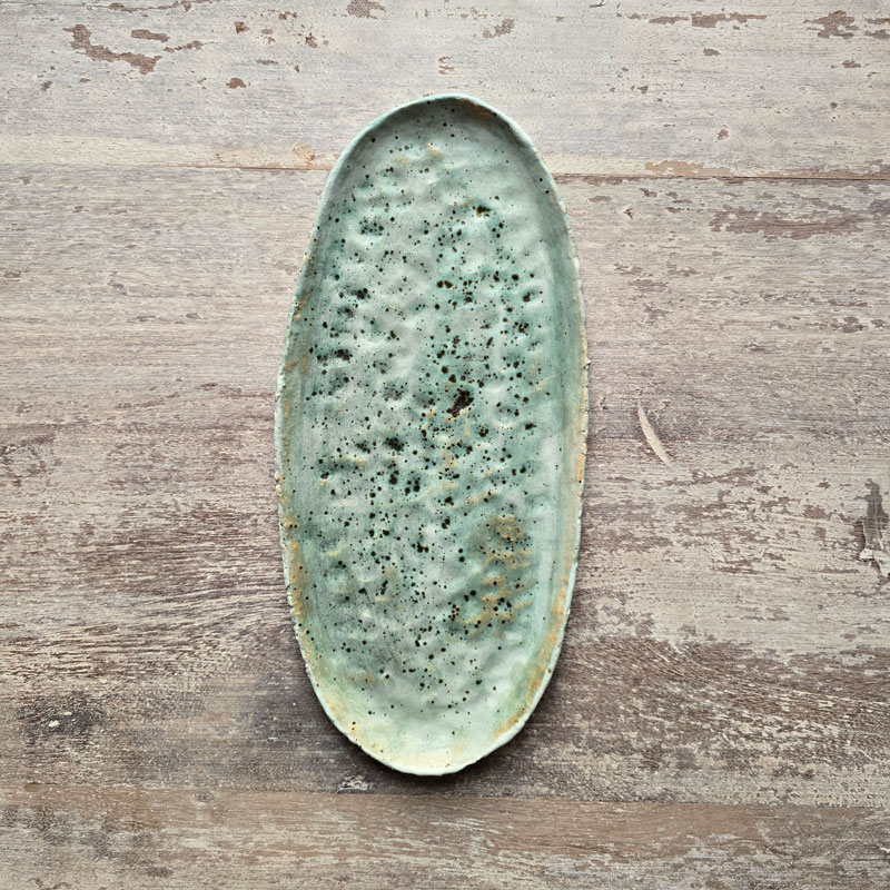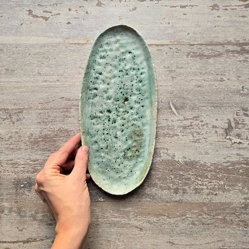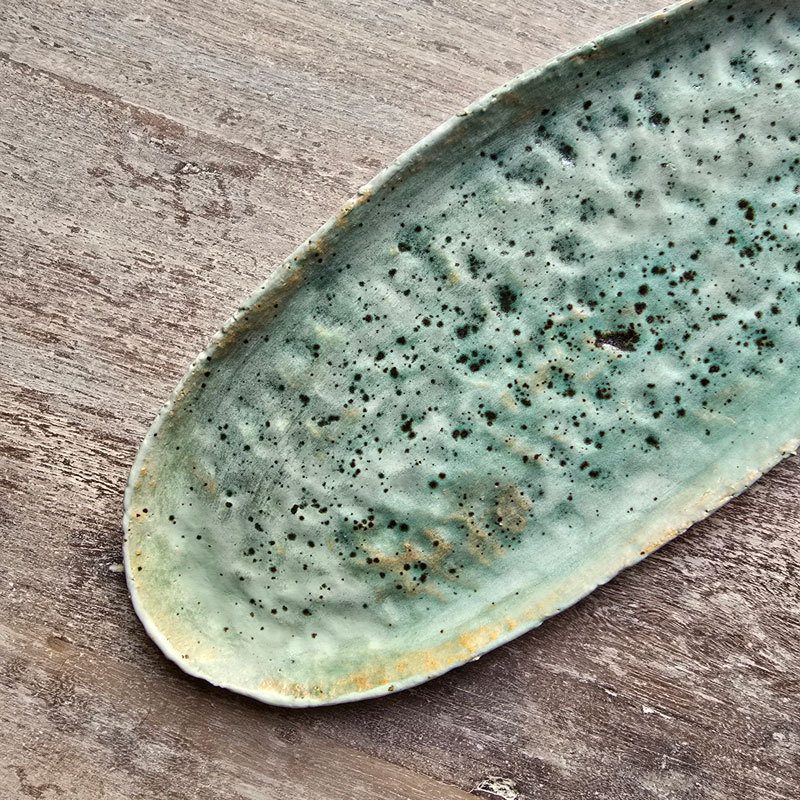 Podłużny talerz kamionkowy, który może służyć jako dekoracja stołu lub talerz do serwowania potraw rybnych (śledzik, szprotka), przekąsek imprezowych, kiszonek, czipsów z warzyw, pralinek, itd. Może także pełnić funkcję przybornika na ołówki i pióra przy biurku.