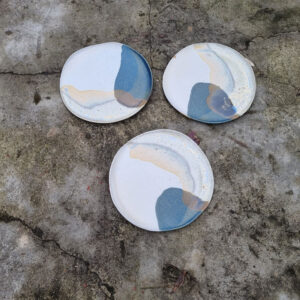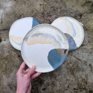 Talerze należą do serii naczyń o nazwie Aotearoa. Aotearoa to nazwa Nowej Zelandii w języku maoryskim. Seria powstała pod wpływem podróży po tym malowniczym kraju, która miała miejsce w październiku 2019 roku. Nowa Zelandia jest uznawana za najbardziej zróżnicowany pod względem geologicznym i geograficznym kraj na świecie. Nic dziwnego, można tam spotkać aktywne wulkany, głębokie fiordy, pokryte śniegiem góry, lasy sekwojowe, lodowce, gorące żródła, gejzery, baseny błotne, świecące jaskinie i spektakularne plaże ( złote, czarne i białe).