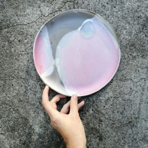Ten ręcznie robiony talerz może służyć do podawania potraw lub jako dekoracja stołu. Dobrze sprawdzi się jako talerz do serwowania przekąsek takich jak sery, warzywa, owoce. Talerz należy do serii naczyń o nazwie Cherry Blossom. Podróż po Japonii w okresie zakwitania sakury – czyli kwiatów wiśni, stanowi bazę dla tej serii naczyń. Sakura jest symbolem nadejścia wiosny, miłości i młodości. W krajobrazie Japonii dominują wtedy odcienie różu i bieli – charakterystyczne dla tej serii także.