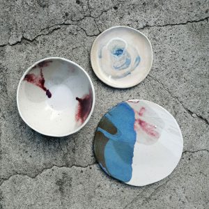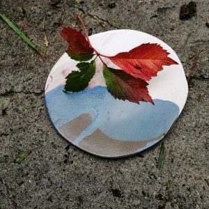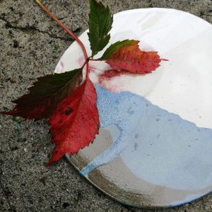 Ten ręcznie robiony talerz może służyć do podawania potraw lub jako dekoracja stołu. Dobrze sprawdzi się jako talerz obiadowy lub do serwowania przekąsek takich jak sery, warzywa, owoce. Ładnie prezentuje się na nim porcja ciasta z gałką lodów.Talerz należy do serii naczyń o nazwie Early Winter. Seria obrazuje ten szczególny moment w roku, gdy kończy się jesień, a zaczyna zima. Czerwień i purpura mieszają się z zimowymi odcieniami bieli.