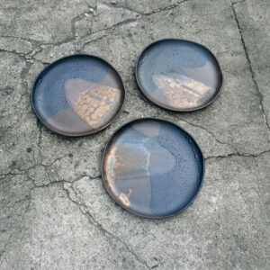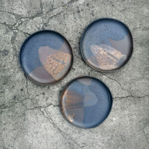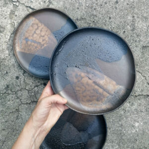 Ten ręcznie robiony talerz może służyć do podawania potraw lub jako dekoracja stołu. Dobrze sprawdzi się jako talerz do serwowania przekąsek takich jak sery, warzywa, owoce. Talerz należy do serii naczyń o nazwie Rusty. Japońska filozofia wabi sabi zainicjowała serię surowych, nieregularnych naczyń. Kiedy zwiedzałam Kioto, miałam okazję zrozumieć w jaki sposób i dlaczego Japończycy widzą piękno w niedoskonałości i przemijaniu.